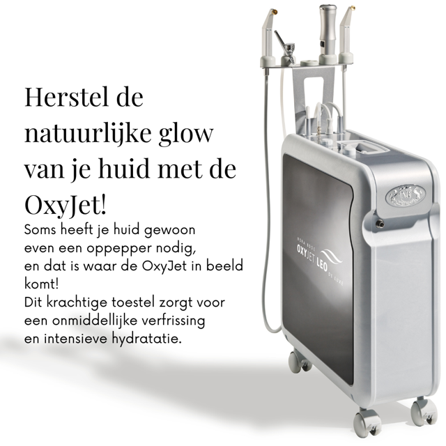 Oxyjet is een innovatieve, non-invasieve huidbehandeling waarbij pure zuurstof onder lichte druk (drukinjectie) in de huid wordt gebracht, samen met actieve serums die de huid voeden, herstellen en verstevigen. Deze technologie stimuleert de celvernieuwing, verbetert de doorbloeding en laat de huid er direct frisser, voller en stralender uitzien.